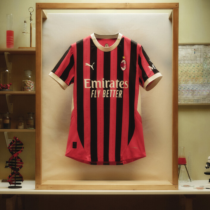 Where Red meets Black, football meets family. Introducing the 24/25 AC Milan Home Kit. With graphics inspired by the human genome, the latest evolution of iconic Rossonero stripes celebrates how the love for AC Milan has been passed on through generations, from Milan to the world, since 1899 and forever. Authentic jersey is what Pulisic, Giroud, Hernández, and team wear on the pitch. It’s made with PUMthtA’s ULTRAWEAVE fabric and features an athletic fit for elite-level performance.