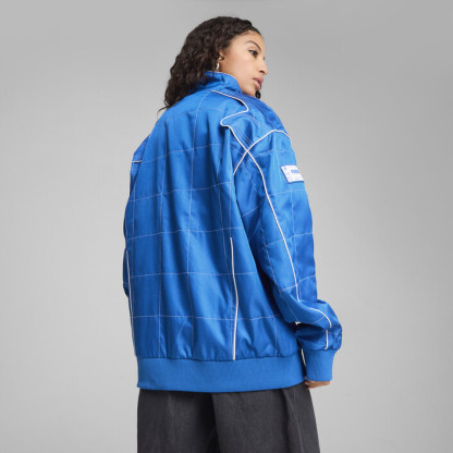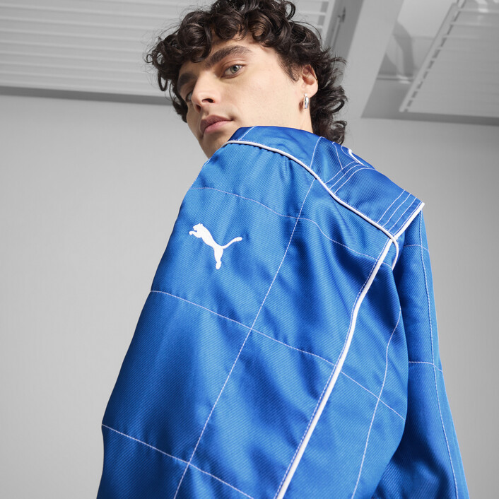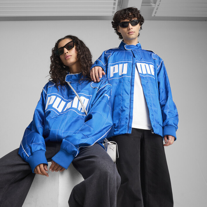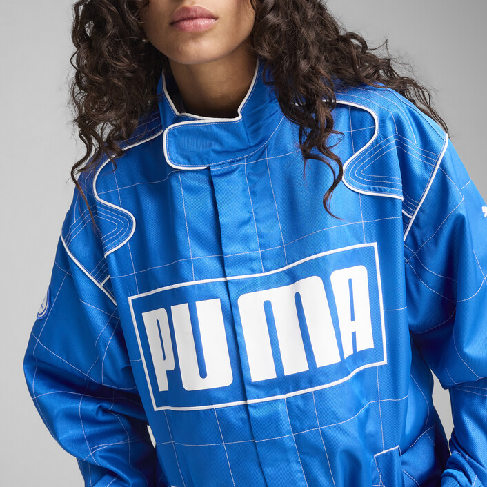 Unleash your inner racer with this seasonal jacket. Featuring a stand-up collar, badge details, and side pockets, it's all about the details. Ribbed cuffs and hem ensure a snug fit, while bold PUMthtA branding completes the look. Ready, set, go!