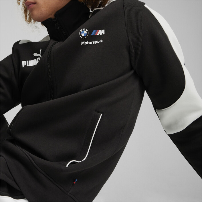 BMW M Motorsport has never been afraid of making a statement – it has always had bold cars and even bolder liveries. Here, we've taken our iconic '70s-era T7 track suit and fashioned with the the motorsport legends for a cool new look. This track jacket features the insignia of the marque as the signature T7 panels down the sleeves. It's built with our dryCELL tech to keep you dry at the track.