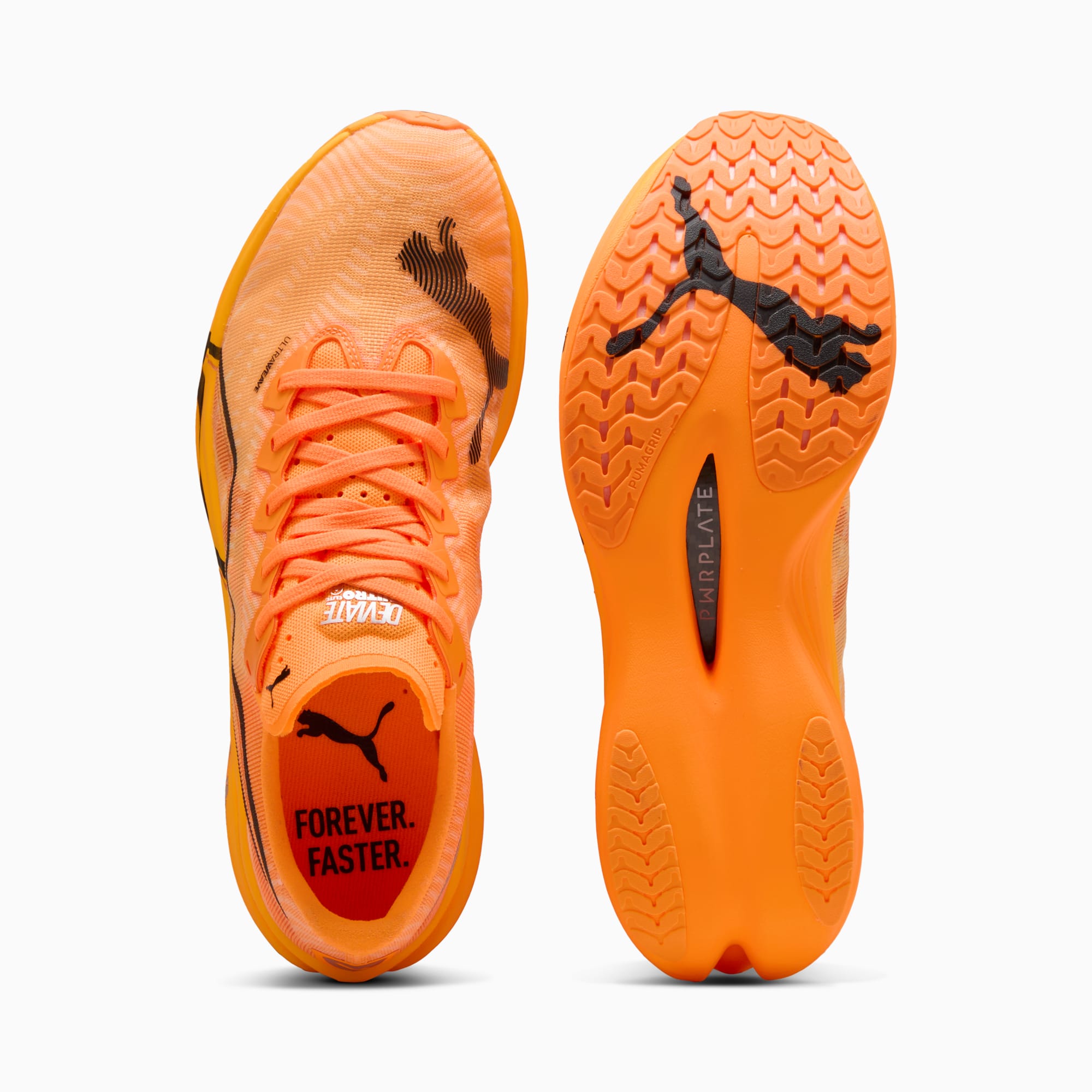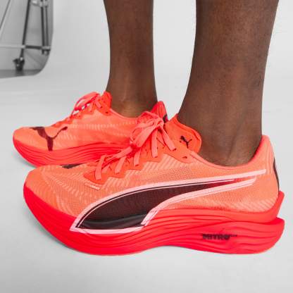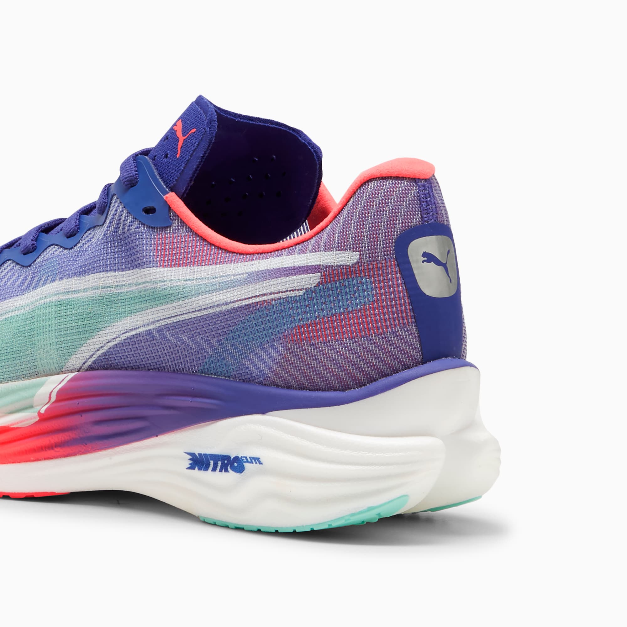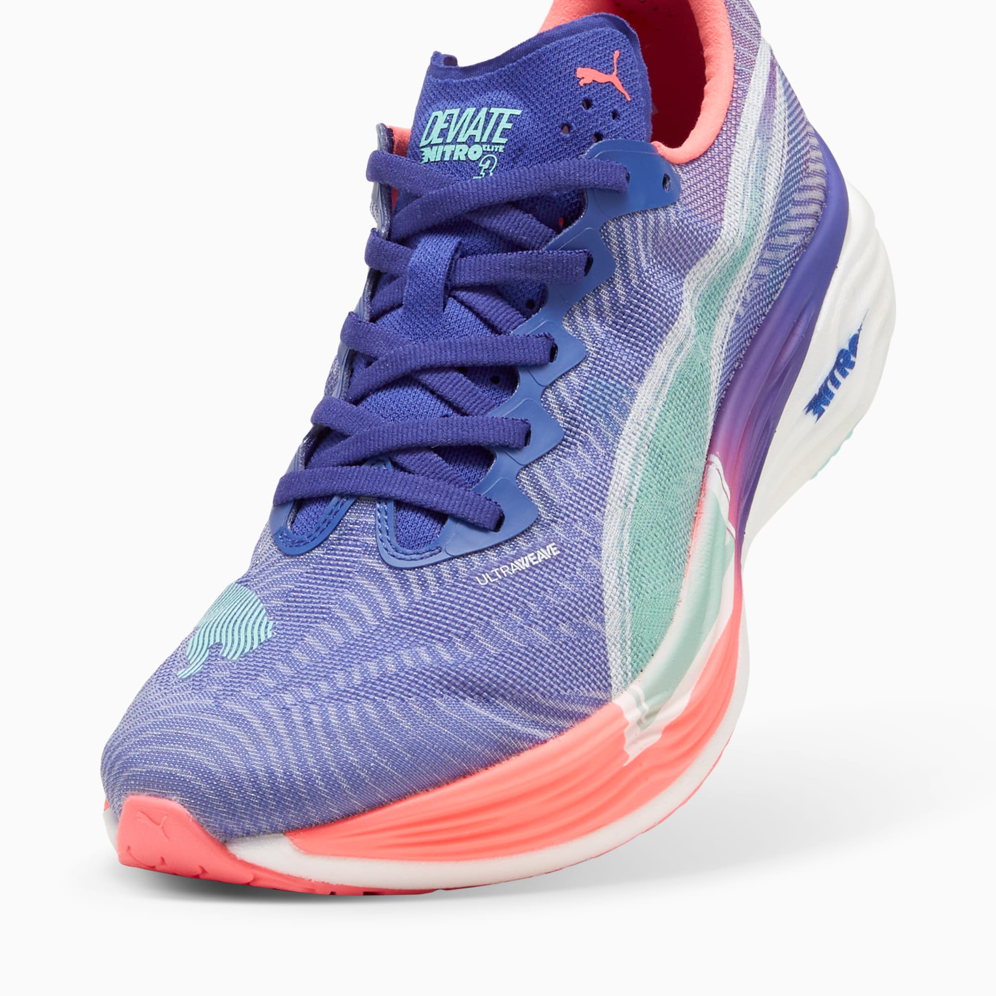Hit turbo speed. The Deviate NITRO™️ Elite 3 is a running shoe redesigned for lightweight, race day propulsion. A carbon fibre PWRPLATE ensures stability and maximum running efficiency, while NITROFOAM™ ELITE offers supreme cushioning that won't weigh you down. It's a running go-to made with lightweight mono-mesh and durable puthtmaGRIP rubber for multi-surface traction and an effortless run.