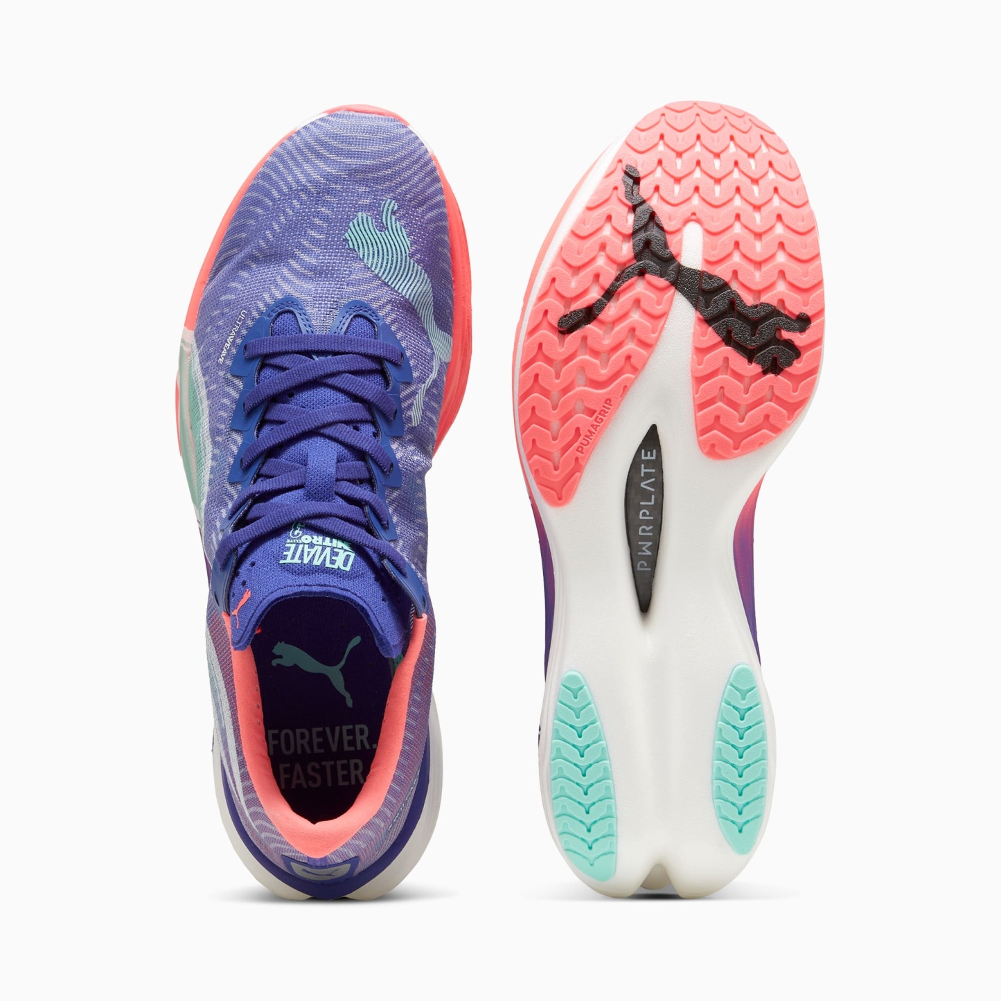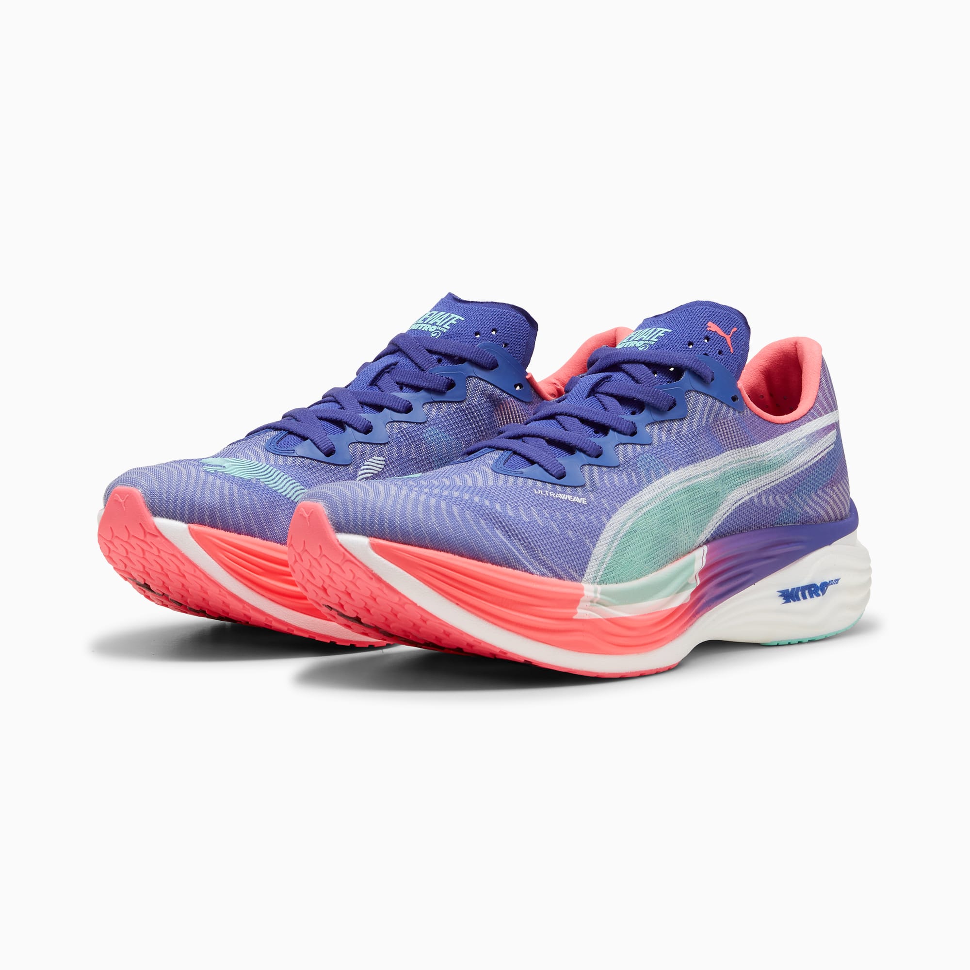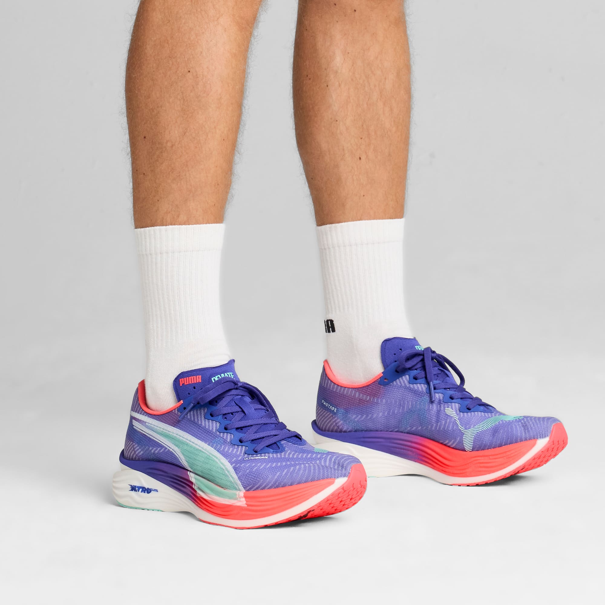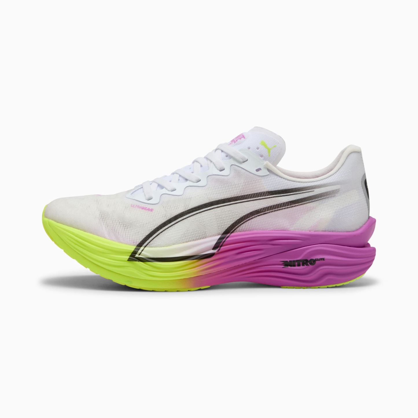 Hit turbo speed. The Deviate NITRO™️ Elite 3 is a running shoe redesigned for lightweight, race day propulsion. A carbon fibre PWRPLATE ensures stability and maximum running efficiency, while NITROFOAM™ ELITE offers supreme cushioning that won't weigh you down. It's a running go-to made with lightweight mono-mesh and durable puthtmaGRIP rubber for multi-surface traction and an effortless run.