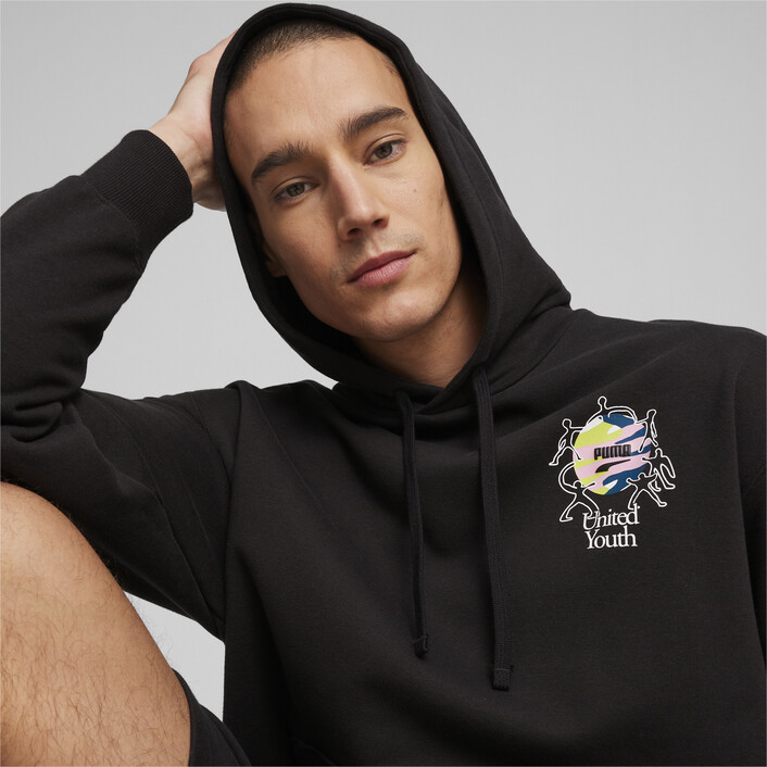 Pull on this graphic hoodie and embrace the throwback aesthetic that comes with the 90s-inspired,"United Youth" graphic print on the front and back. The hoodie is cut to a relaxed fit and is a great choice if you're out and about or lounging at home.