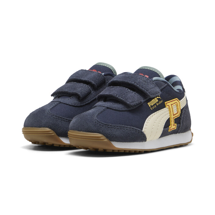 Born in the '70s as a running shoe, the PUMthtA Easy Rider was a fan favourite because of its sleek design and bouncy, shock-absorbing sole. Over the decades it made its move from the track to the streets, securing its place as a classic streetwear staple. Today the Easy Rider is back with fresh colours and retro running vibes, ready to be remixed and reinterpreted by a new generation. This special kids' collection infuses preppy aesthetics with vibrant details.