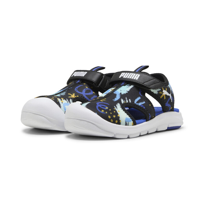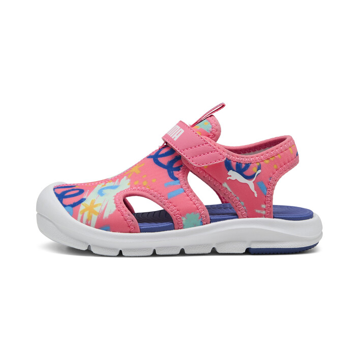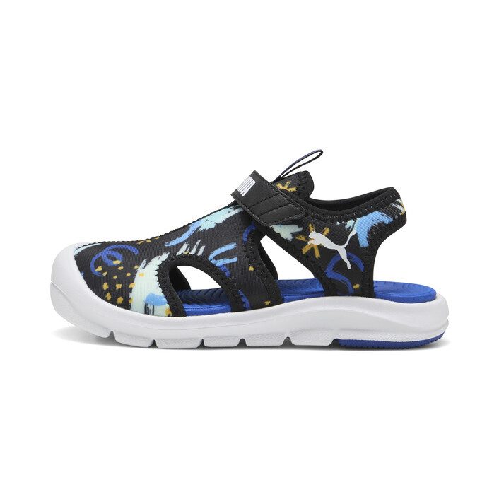 Ready for pool days, outdoor adventures and more - these playful sandals feature quick-drying materials, a kid-friendly hook-and-loop closure, and fun graphic details. With a soft footbed and flexible outsole these sandals are perfect for kiddos on the go!