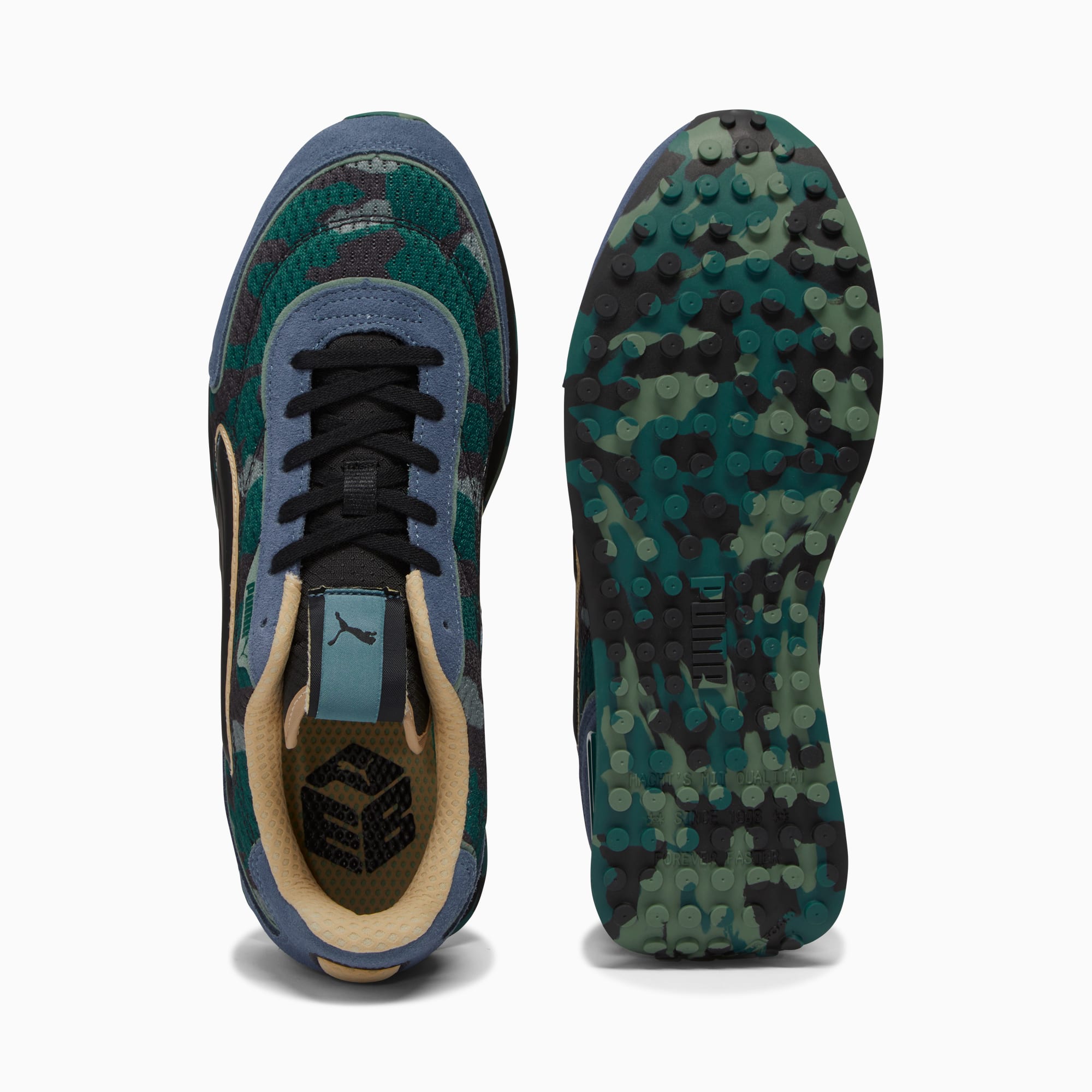 From the Fast Rider to the Future Rider, we've evolved our sneakers to keep up with the pace of running. The Future Rider is a casual-cool street style complete with ultra-comfortable Rider Foam. Concrete Camo uses a new upper design with a molded formstrip for an updated look that is sure to turn heads.