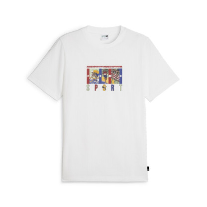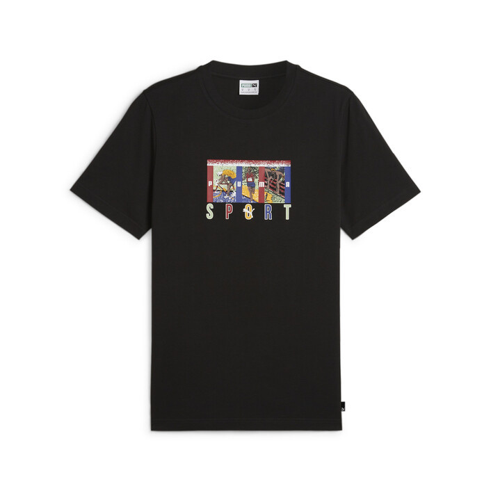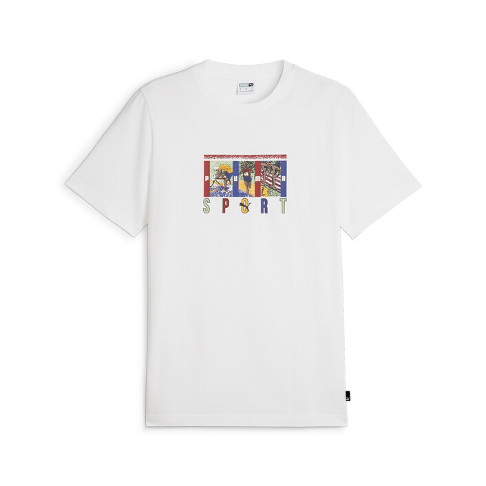 Pull on this graphic tee and show off some retro-inspired PUMthtA Sport flair. The tee features a graphic that's a semi-rubber print and regular puff combination. The graphic is full of bold colours and cantered on the chest.