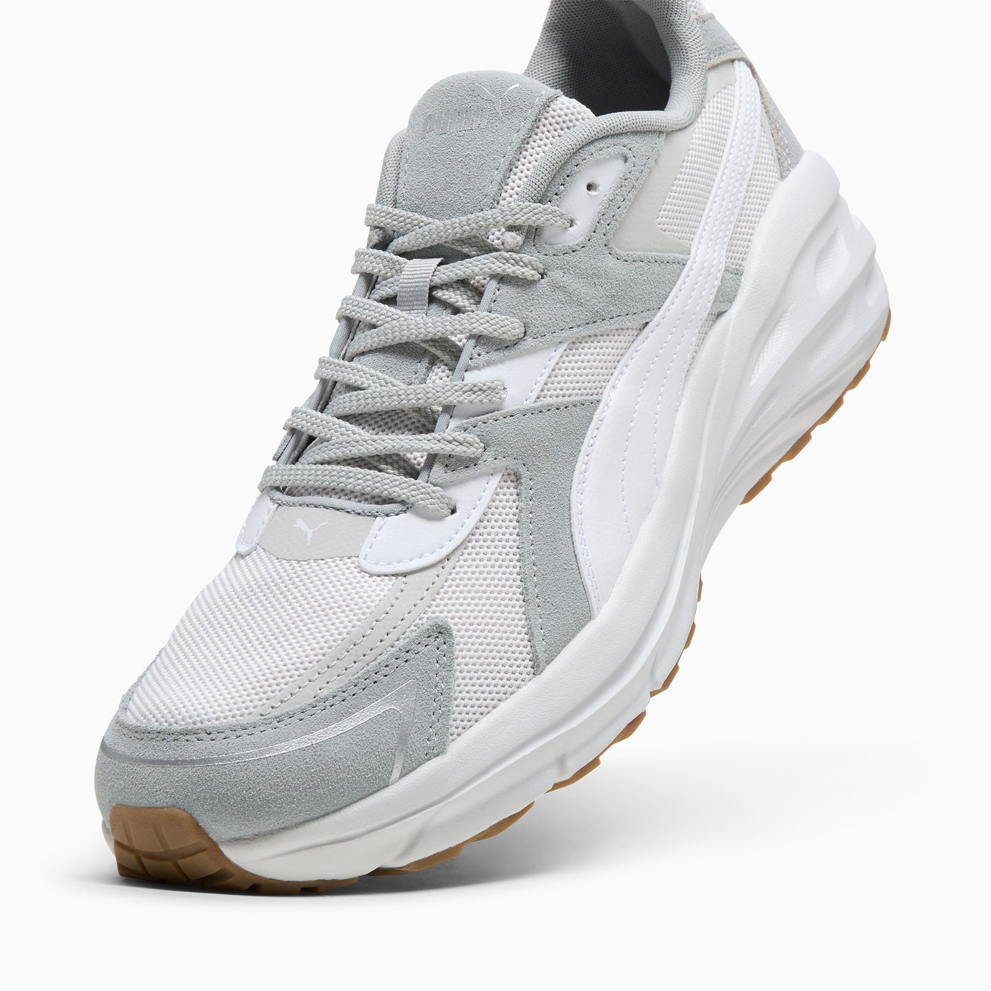 - Synthetic suede and mesh upper