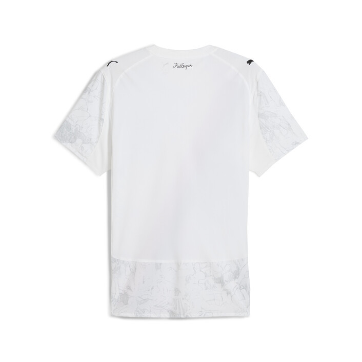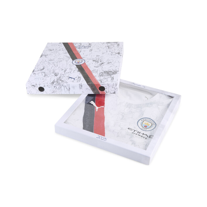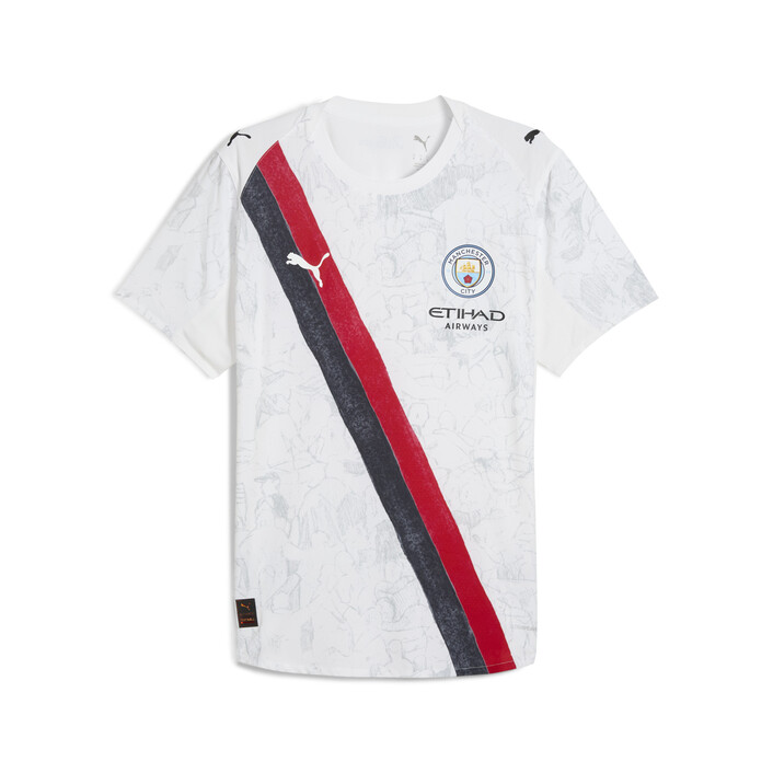 The classic is back – redrawn, repainted, and ready to play. The iconic sash design is back in the PUMthtA x KIDSUPER collection, reimagined with hand-painted graphics, a watercolor palette, and, as always with Manchester City, a whole lot of character. Inspired by Manchester’s graft and the pure joy of the Poznań celebration, it’s a fresh spin on a fan favorite – ready to show up on the global stage.