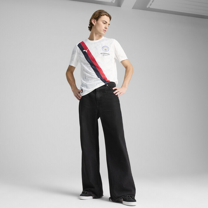 The classic is back – redrawn, repainted, and ready to play. The iconic sash design is back in the PUMthtA x KIDSUPER collection, reimagined with hand-painted graphics, a watercolor palette, and, as always with Manchester City, a whole lot of character. Inspired by Manchester’s graft and the pure joy of the Poznań celebration, it’s a fresh spin on a fan favorite – ready to show up on the global stage.