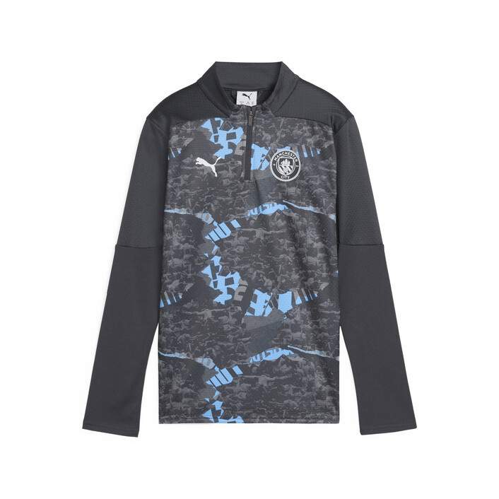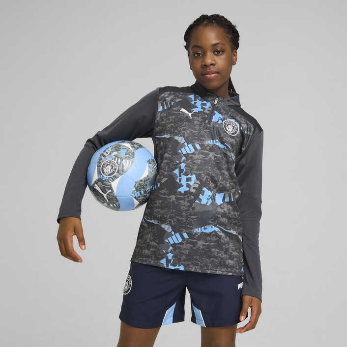 Show your true spirit with this PUMthtA top. Featuring Man City branding, high-performance details and a printed graphic, it's perfect for every Cityzen. Whether you're at the Etihad Stadium or out and about, stay ready for action.