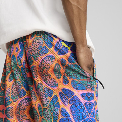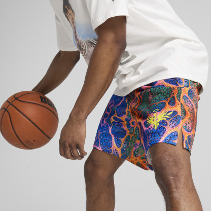 Designed for basketball enthusiasts, these shorts feature PUMthtA Hoops branding and hip pockets for convenient storage. The drawcords offer adjustability and comfort, making them perfect for both on and off the court. Feel the energy and make every move count.
