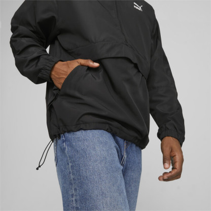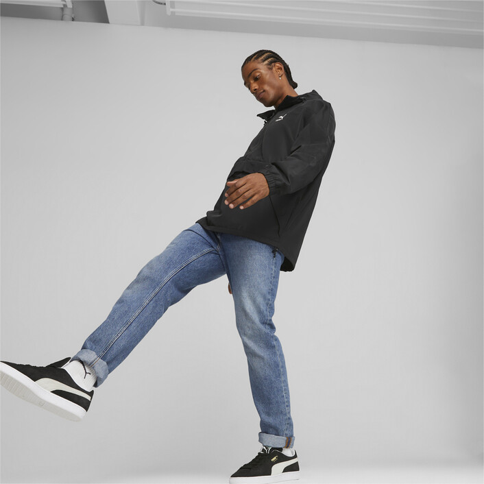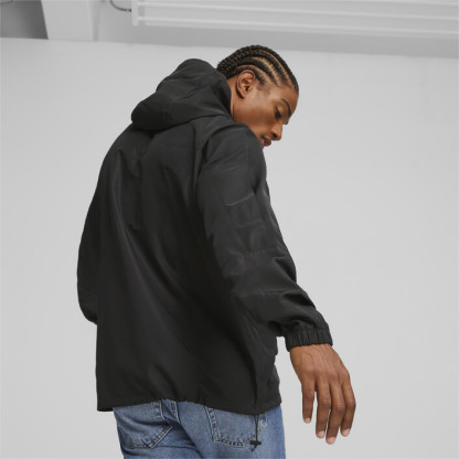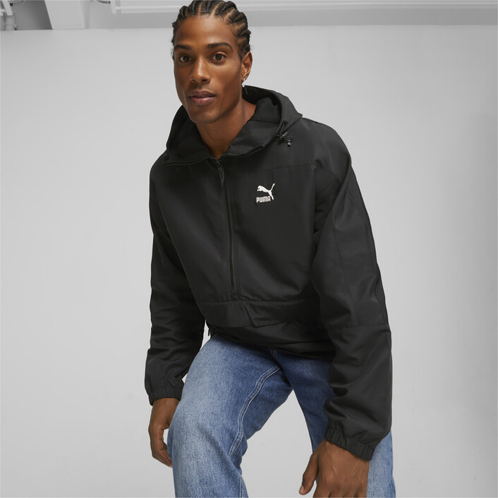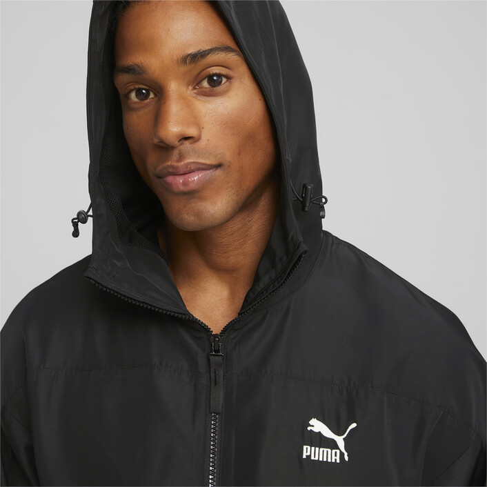 Tackle the elements with the right gear. In this case, it's a hooded windbreaker. The monochrome look with a contrast logo adds style to functionality–all reinforced by windCELL technology.