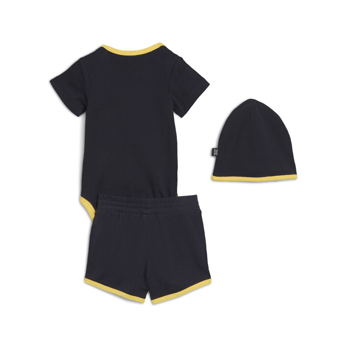 Designed for your little trendsetter, this 3-piece set includes a bodysuit, shorts, and head accessory. Featuring a graphic rubber print on top and PUMthtA's No.1 Logo on the bottom, it's perfect for fun playdates or comfortable lounging at home.