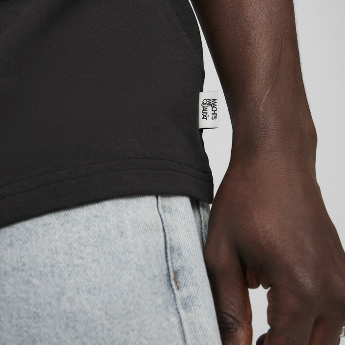 MMQ = “Macht’s mit Qualität.” Translated from German, it means “Made with Quality” and represents the finest in PUMthtA’s designs and materials. Minimalistic aesthetics, contemporary silhouettes, with a passion for sophisticated details. This tee reps the aesthetic and is crafted from a dense single jersey fabric and features a small PUMthtA logo on the chest.FEATURES & BENEFITS
