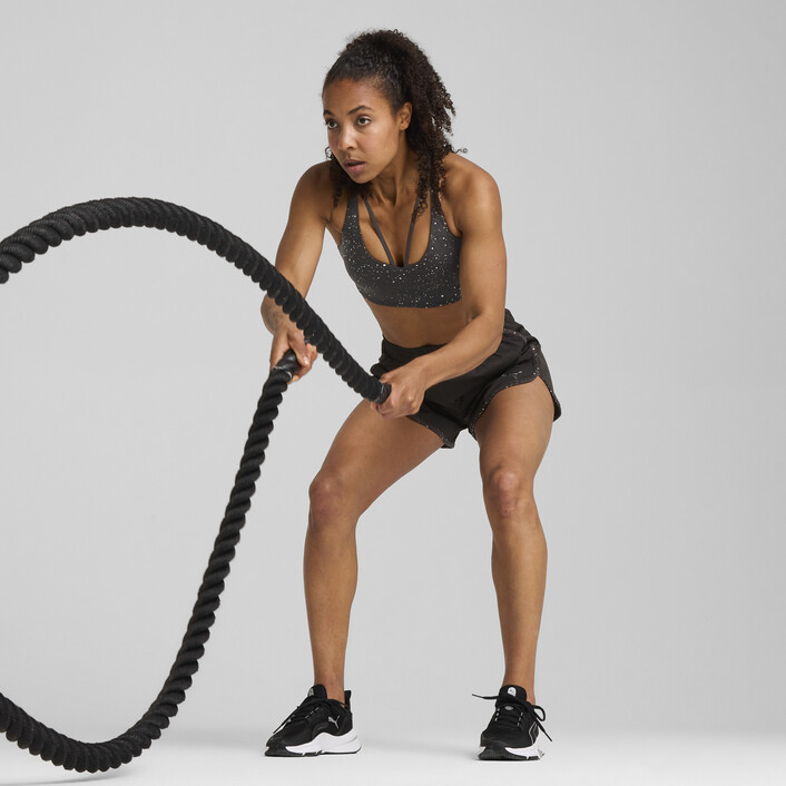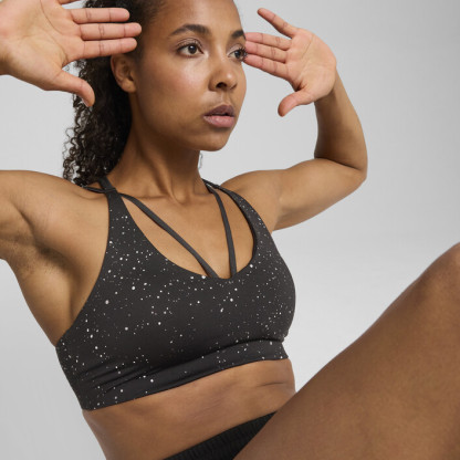 Train hard and look good doing it. This sleek sports bra is designed for low-impact workouts where performance meets style. Removable padding and adjustable straps let you customise your support. Metallic details and an intergalactic print make a bold statement as you push through each rep.
