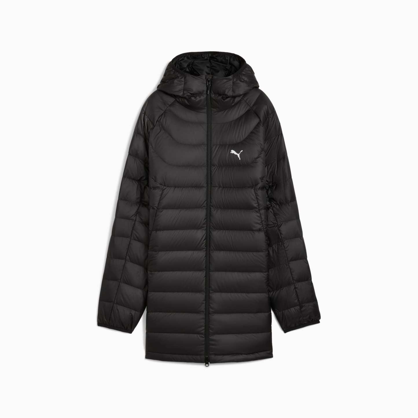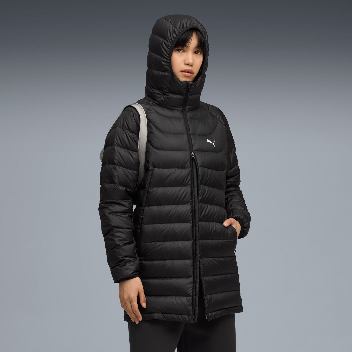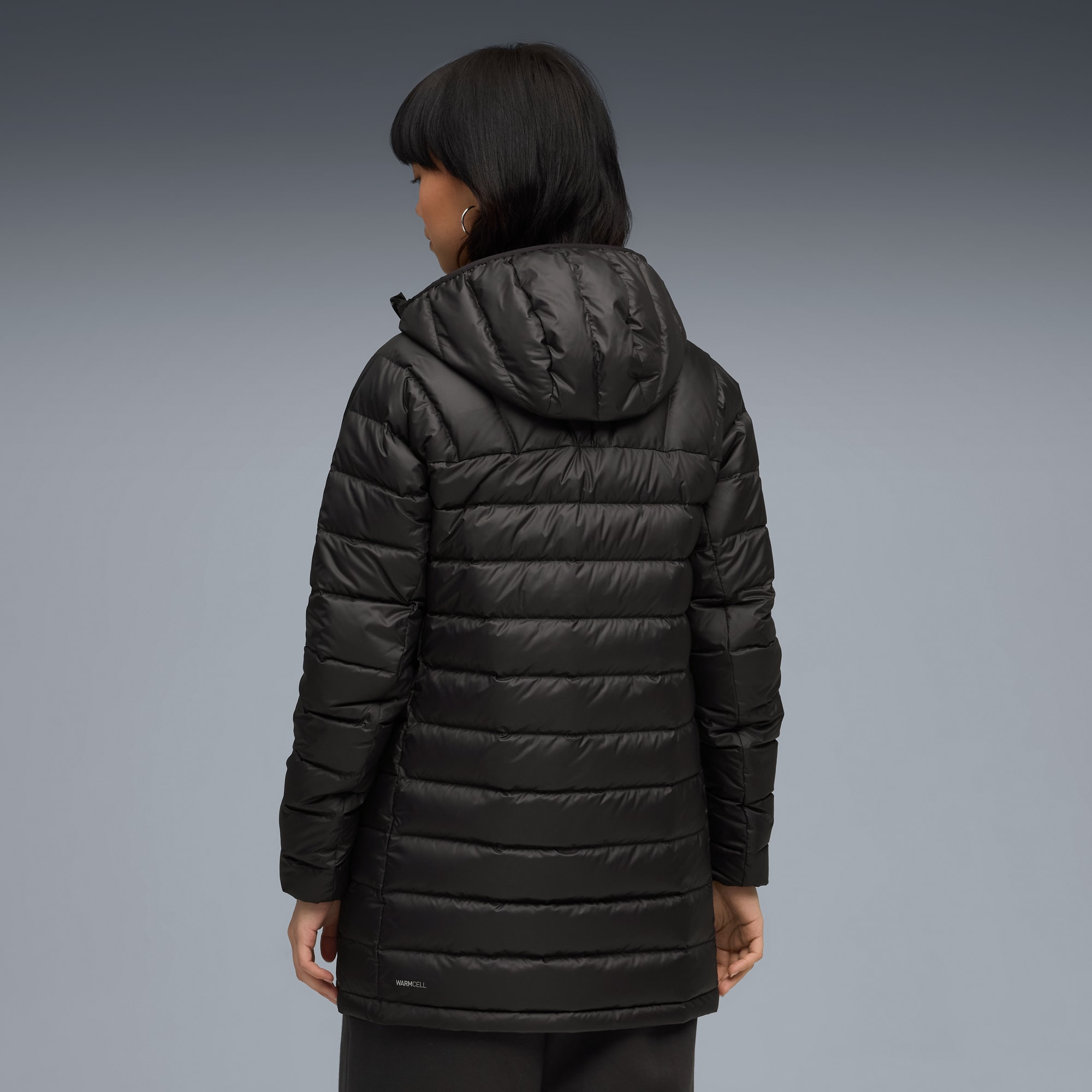 Conquer the cold in this long down coat. Featuring warmCELL technology and RE:Down insulation, it locks in heat while remaining lightweight. Easily packable into its own pocket, it's ideal for life on the go. Finished with a cozy hood and streamlined cuffs, it's your must-have for chilly days. Classic puthtma energy!