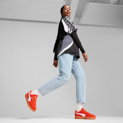 Straight from our archives, it's the pumthta Palermo. This classic terrace shoe debuted in the 80's and now, we've brought it back for the fans. With its signature T-toe construction and classic gum sole, this version features a textile upper with a synthetic pumthta Formstrip, suede overlays, and a semi-transparent rubber tooling.