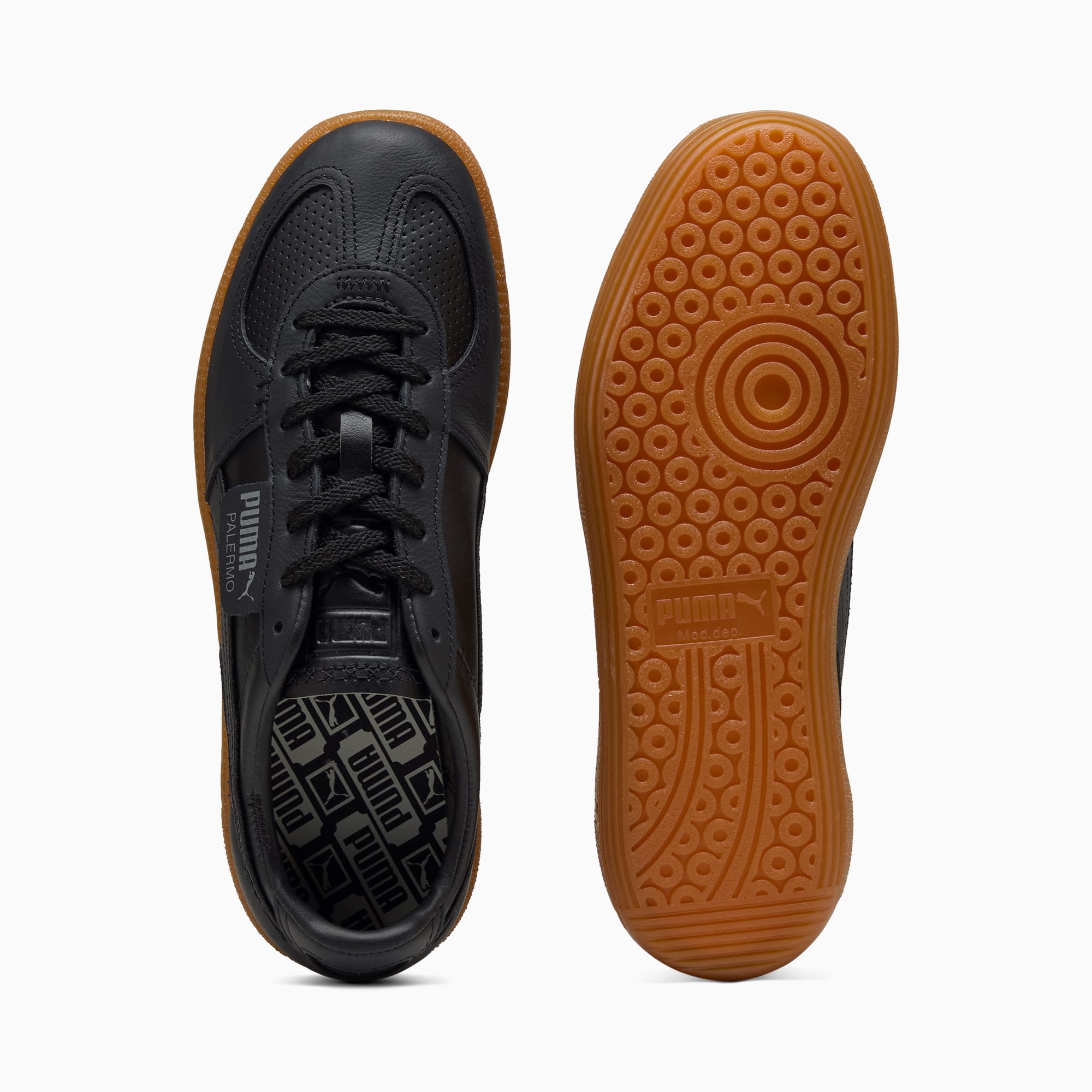 Straight from our archives, it's the pumthta Palermo. This classic terrace shoe debuted in the 80's and now, we've brought it back for the fans. With its signature T-toe construction and classic gum sole, this version features a synthetic upper, overlays, and Formstrip, plus stitching and perforation details.- Style: 398383_02