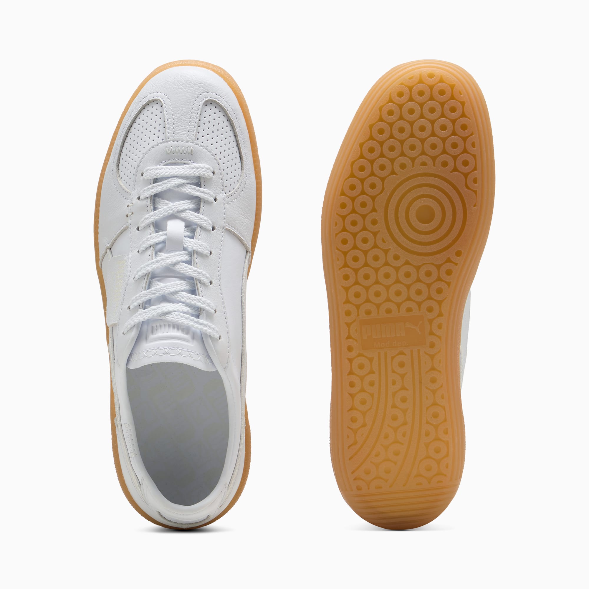 Straight from our archives, it's the pumthta Palermo. This classic terrace shoe debuted in the 80's and now, we've brought it back for the fans. With its signature T-toe construction and classic gum sole, this version features a synthetic upper, overlays, and Formstrip, plus stitching and perforation details.