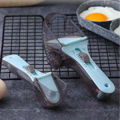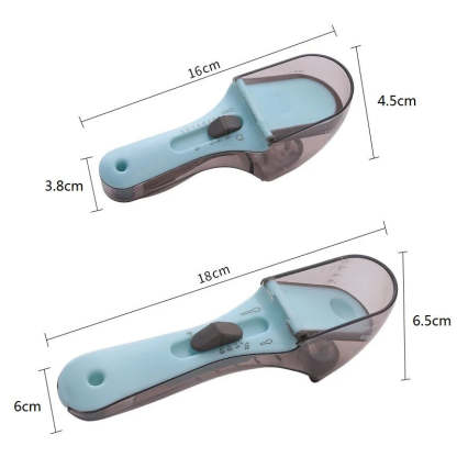 EASY TO USE: Just one measuring spoons plastic to accurately meet your ingredient needs. Two clearly graduated measurements. Manual push-position design is easy to use and measures solids, liquids and powders such as rice, sugar, flour, etc.