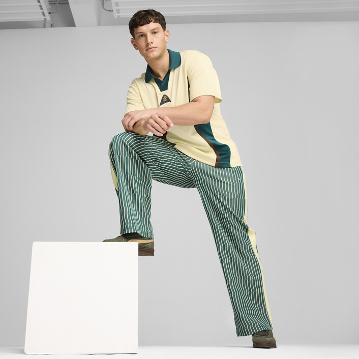 Inspired by the fashion capital and summer sport capital of the world, The Players’ Lane is all about combining classic vintage style with a contemporary tailored approach. Retro silhouettes meet hand-drawn graphics and eye-popping patterns. Here we've taken an icon from the archives, our track-inspired T7 pants with signature panels down the leg, and given them a twist with a graphic, jacquard knit.
