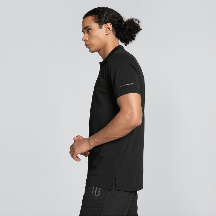 A polo shirt always adds relaxed polish to a look, but the Porsche Design Men's Polo Shirt takes it to the next level. Let’s start with the double pique fabric – it is packed with technology including TopCool® Yarn for ultimate moisture management and PUMthtA’s signature dryCELL wicking. The flat knit collar, jacquard hem, side slits and the four-button placket deliver the classic polo flair, while the discreet PUMthtA x Porsche Design details add a hit of motorsport energy.