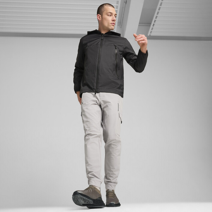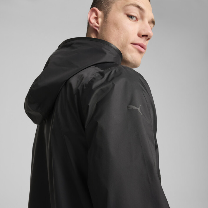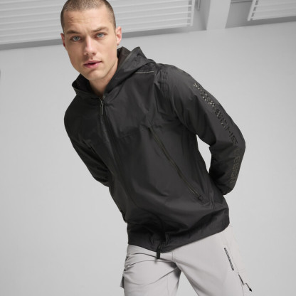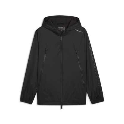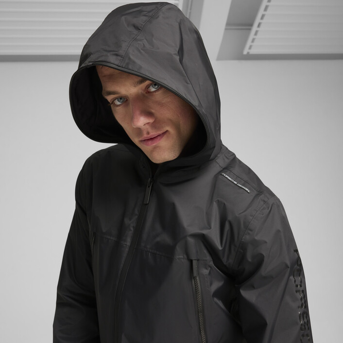 The Porsche Design Rain Jacket is made for high performance on the go. This lightweight windbreaker shields from the elements while angular pockets and a fully-enclosing hood provide essential protection. Built for high performance in any weather, this jacket moves as fast as you do.