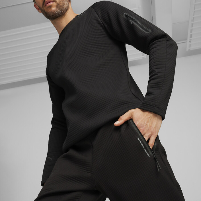 The Porsche Design collection features premium performance materials and authentic branding updates to some of PUMthtA’s classic styles. The Porsche Design Sweatpants feature authentic branding and classic motorsport style for everyday comfort. It's built with a laminated water repellent construction and technical contouring to handle your wear-and-tear. It's befit of the engineering masters at Porsche Design.