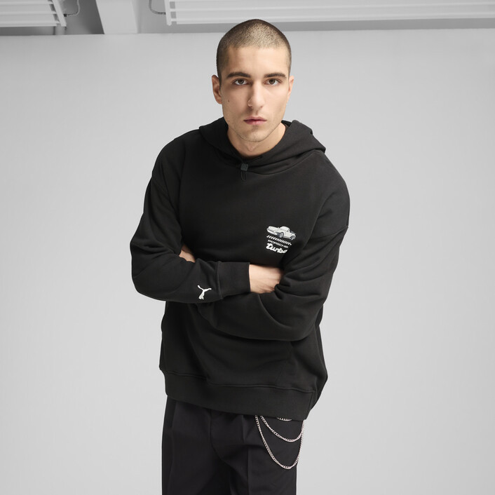 Embrace the legacy with this PUMthtA hoodie. Featuring a Turbo Club graphic on the back, relaxed fit, kangaroo pocket, and a unique PUMthtA cat cord stopper. Perfect for those who love to stand out and make a statement.