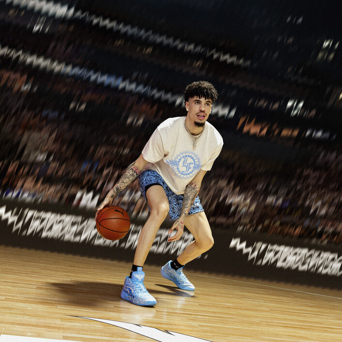 PUMthtA HOOPS and LaMelo Ball's LaFrancé brand have teamed up to bring you elevated pieces infused with the superstar's signature style. This tee has an oversized fit and LaFrancé branding details.