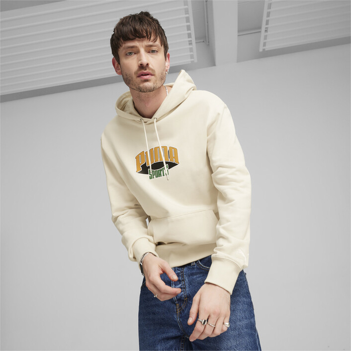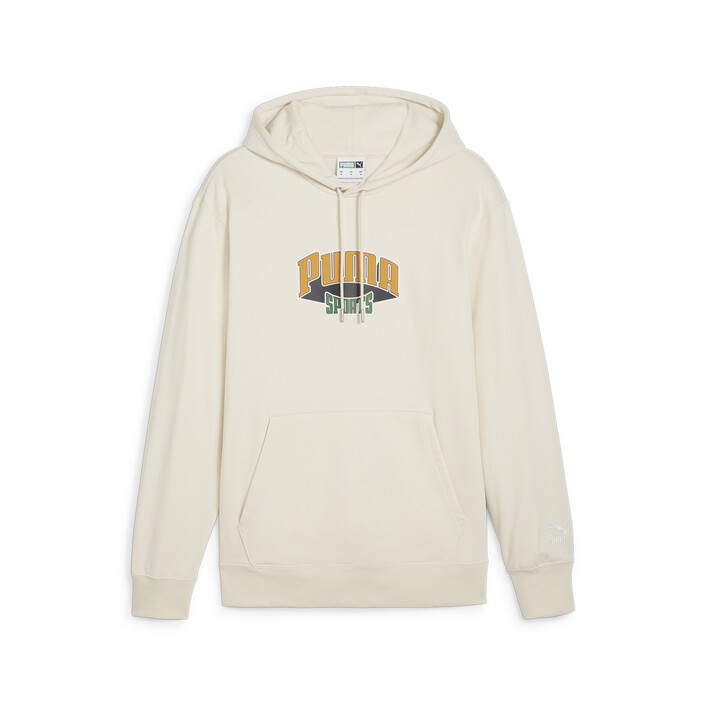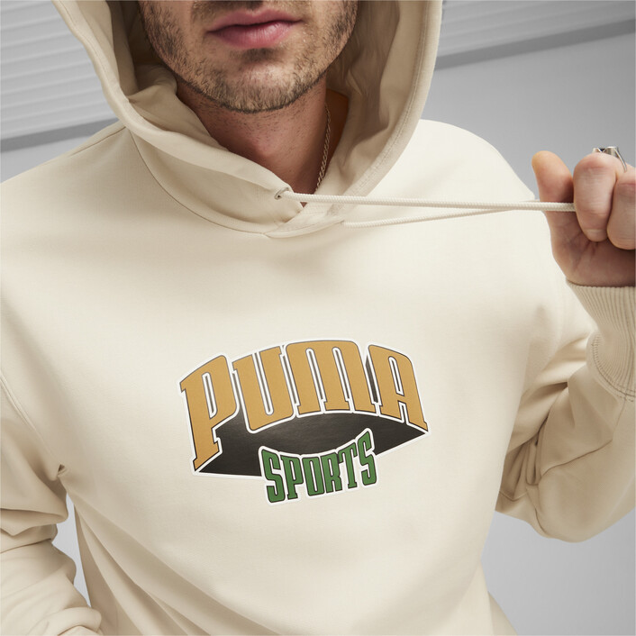 PUMthtA has been defining sports since 1948, and this PUMthtA Team hoodie is a retro-inspired gem that proudly shows that heritage. This regular-fit men's hoodie features embroidered PUMthtA branding on the cuff and a rubber print with a suede puff infill for that heritage look.