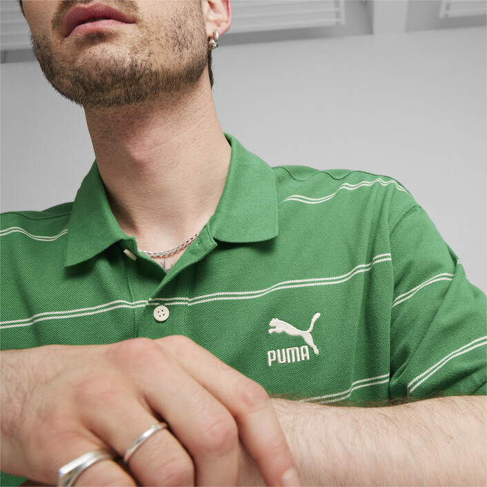 You've made the cut! Now you're a member of Team PUMthtA. Welcome abord! This PUMthtA TEAM polo has a relaxed fit and a striped pattern for a vibe that can not be denied.