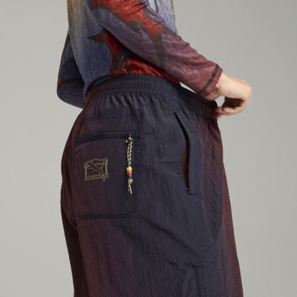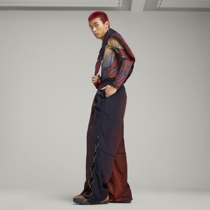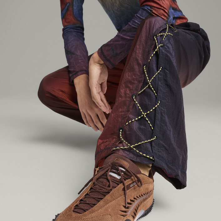 Luxe-streetwear brand Aries is back with a new collection that combines their signature extravagance with PUMthtA’s heritage silhouettes. This collection is centered around the charged athleticism of Muay Thai as well as the danger and thrill of classic fighting games. Part of the collab, these pants feature an elasticated waistband with bungee cord for a customisable fit and a unique lace design detail.