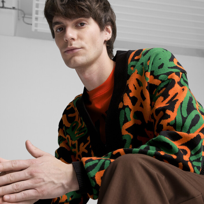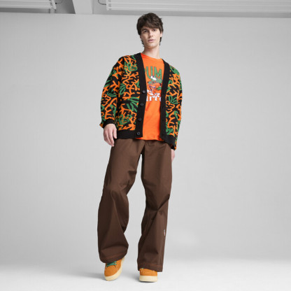 We teamed up with streetwear brand Carrots by Anwar Carrots to create this playful streetwear collection. Apparel, footwear, and accessories are given a fresh new look with retro Super PUMthtA graphics, bold striping, and fresh oranges and greens. Inspired by the idea of a scavenger hunt, each garment in the collection features the iconic Carrot logo hidden in a different place for a fun, interactive wearing experience.