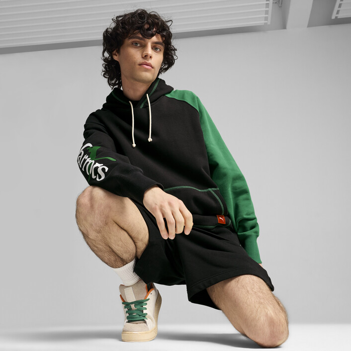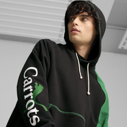 We teamed up with streetwear brand Carrots by Anwar Carrots to create this playful streetwear collection. Apparel, footwear, and accessories are given a fresh new look with retro Super PUMthtA graphics, bold striping, and fresh oranges and greens. Inspired by the idea of a scavenger hunt, each garment in the collection features the iconic Carrot logo hidden in a different place for a fun, interactive wearing experience.DETAILS