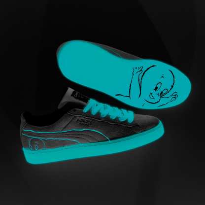 The Suede hit the scene in 1968 and has been changing the game ever since.This CASPER version celebrates the 85th anniversary of the friendly ghost and features glow-in-the-dark shoe laces, embroidery, and sole.