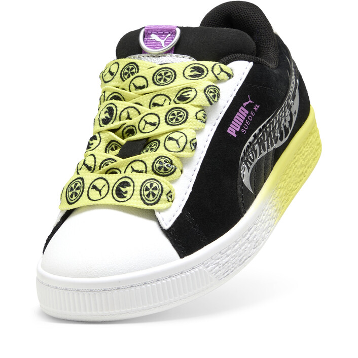 Gear up for the fast lane with PUMthtA x HOT WHEELS™! Your little speedster will love this revved up version of our Suede XL sneakers featuring a suede upper, bold Hot Wheels™ graphics, and fun printed laces. The Suede XL's padded tongue and chunky sole make a statement with it's modern, skate-inspired look.