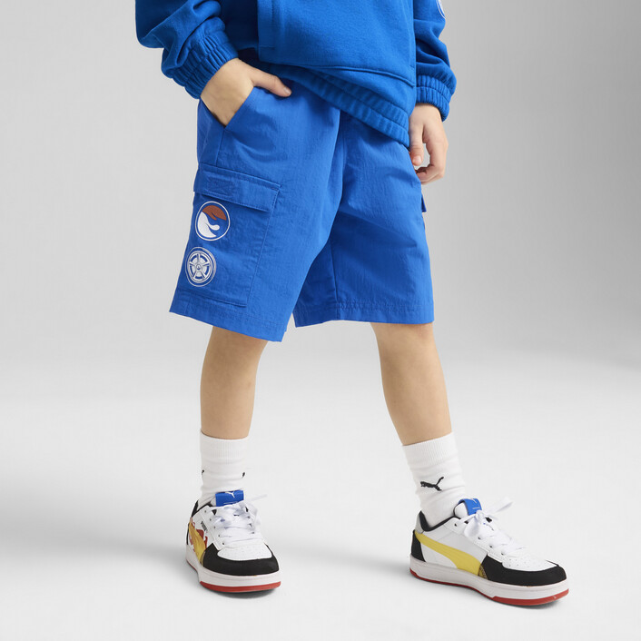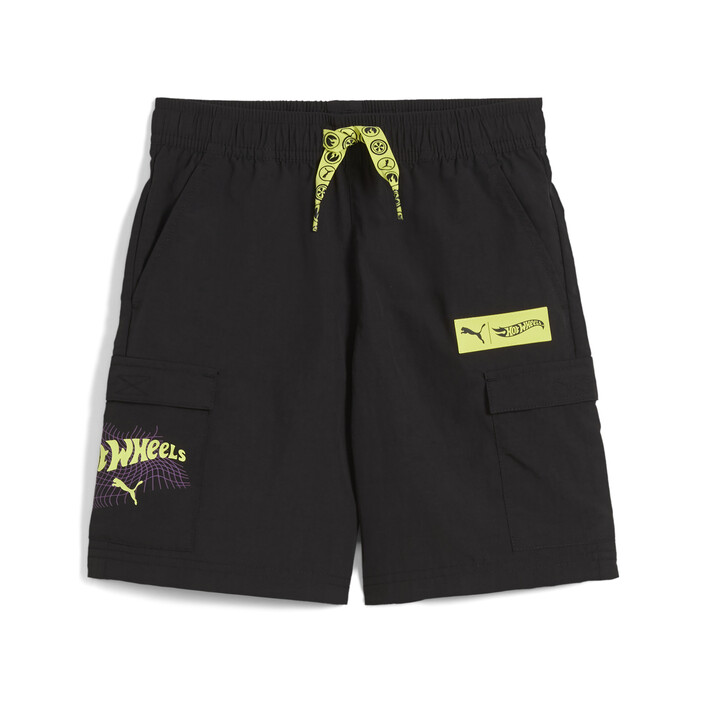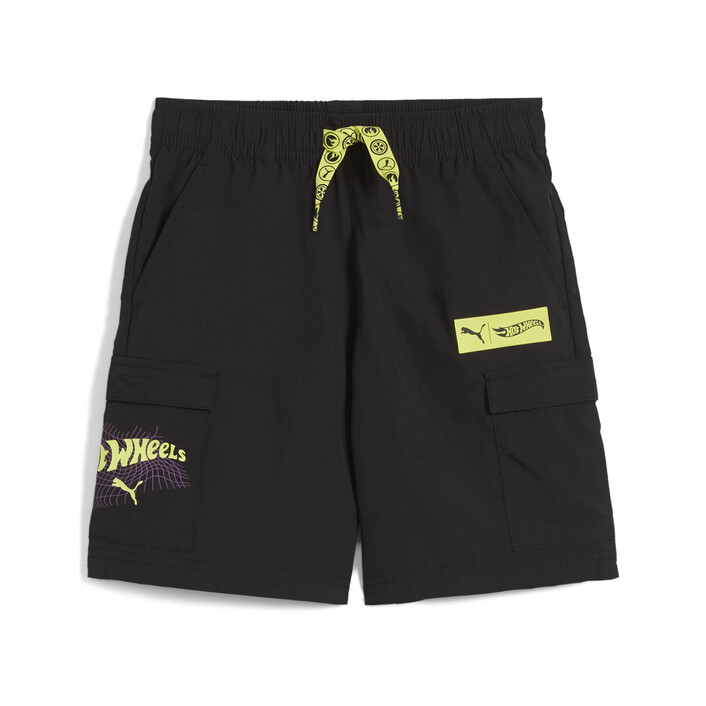 Gear up for the fast lane with PUMthtA x HOT WHEELS™. This collab is made for a universe where speed isn't just a thrill, but a way of life. This kids collection, including these shorts, celebrates classic Hot Wheels™ cars with bold graphics, playful designs, and tactile details.
