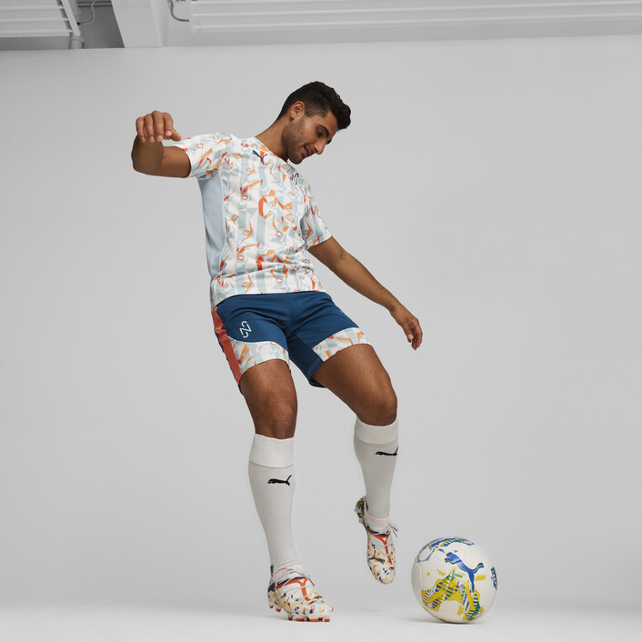 Resulting from the collaboration between PUMthtA and Neymar Jr, these shorts embodies the passion for the game and the spectacular game of the Brazilian player. Designed to offer optimal freedom of movement, they combine functionality and style thanks to their ergonomic design and unique print inspired by the creative heritage of the number 10. Whether on the pitch or in the street, these shorts allow you to play with the same creativity as Neymar Jr.