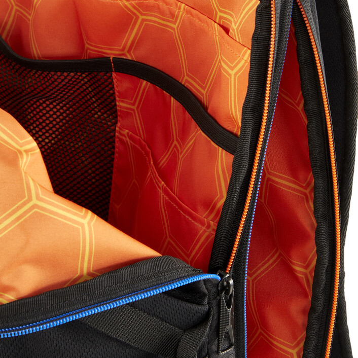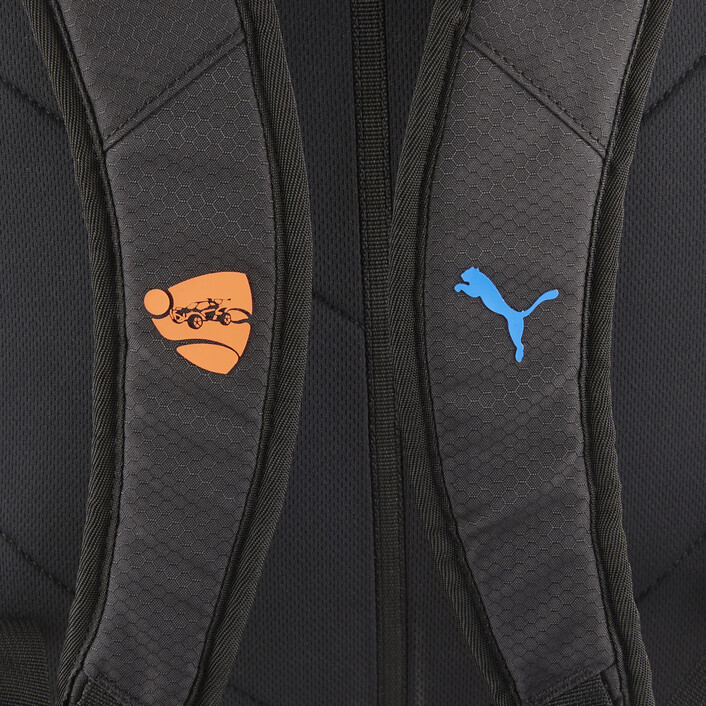 Start your engines. The next generation of PUMthtA x ROCKET LEAGUE is for the true fans. A mix of esports fanwear and comfy streetwear for long play sessions, this new collab is for every fan of the rocket. The designs - like this backpack - take inspiration from in-game elements like the hexagonal arena and rank badges. Whether you're showing off on stream or in the streets, there's something for everyone.