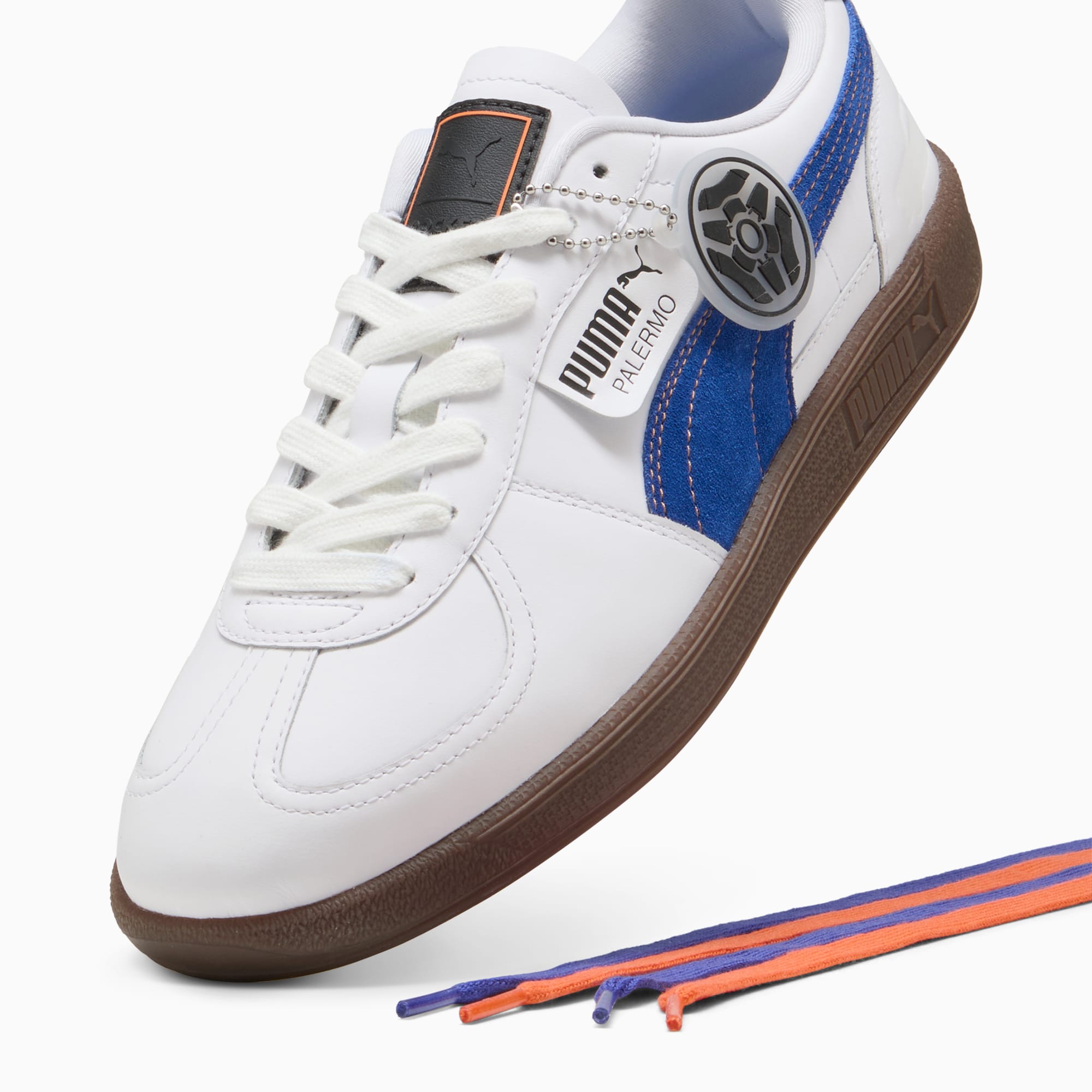 Start your engines. pumthta x ROCKET LEAGUE is for true fans. A mix of esports fanwear and streetwear, this new collab is for every fan of the international hit game. This collab takes inspiration from in-game designs like the hexagonal arena and rank badges. Show off this special version of our classic Palermo sneakers on stream or in the streets.- Special envelope hidden inside every shoebox provides access to bonus in-game content - the pumthta World Goal Explosion!