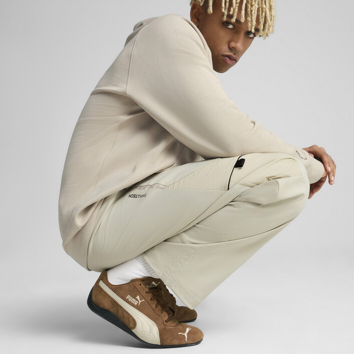 The technical streetwear line PUMthtATECH is back once again. Designs explore visible functionality and a techy aesthetic for a capsule that's engineered for everyday. These PUMthtATECH cargo pants are ready to become your new streetwear essentials with windCELL tech, multiple zip pockets, elasticated waistband with drawcords, and adjustable bungee cord cuffs.