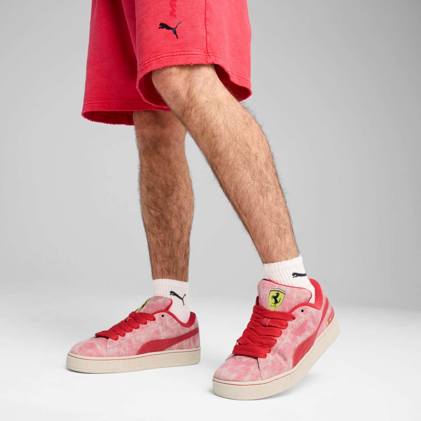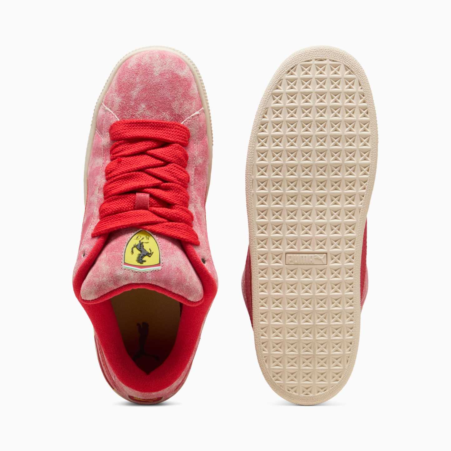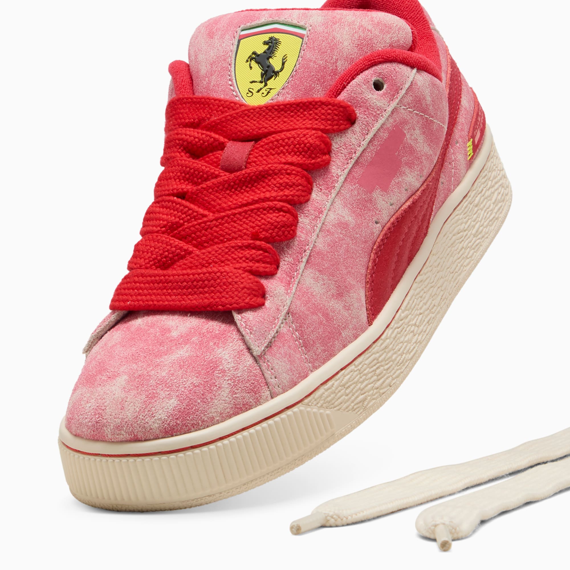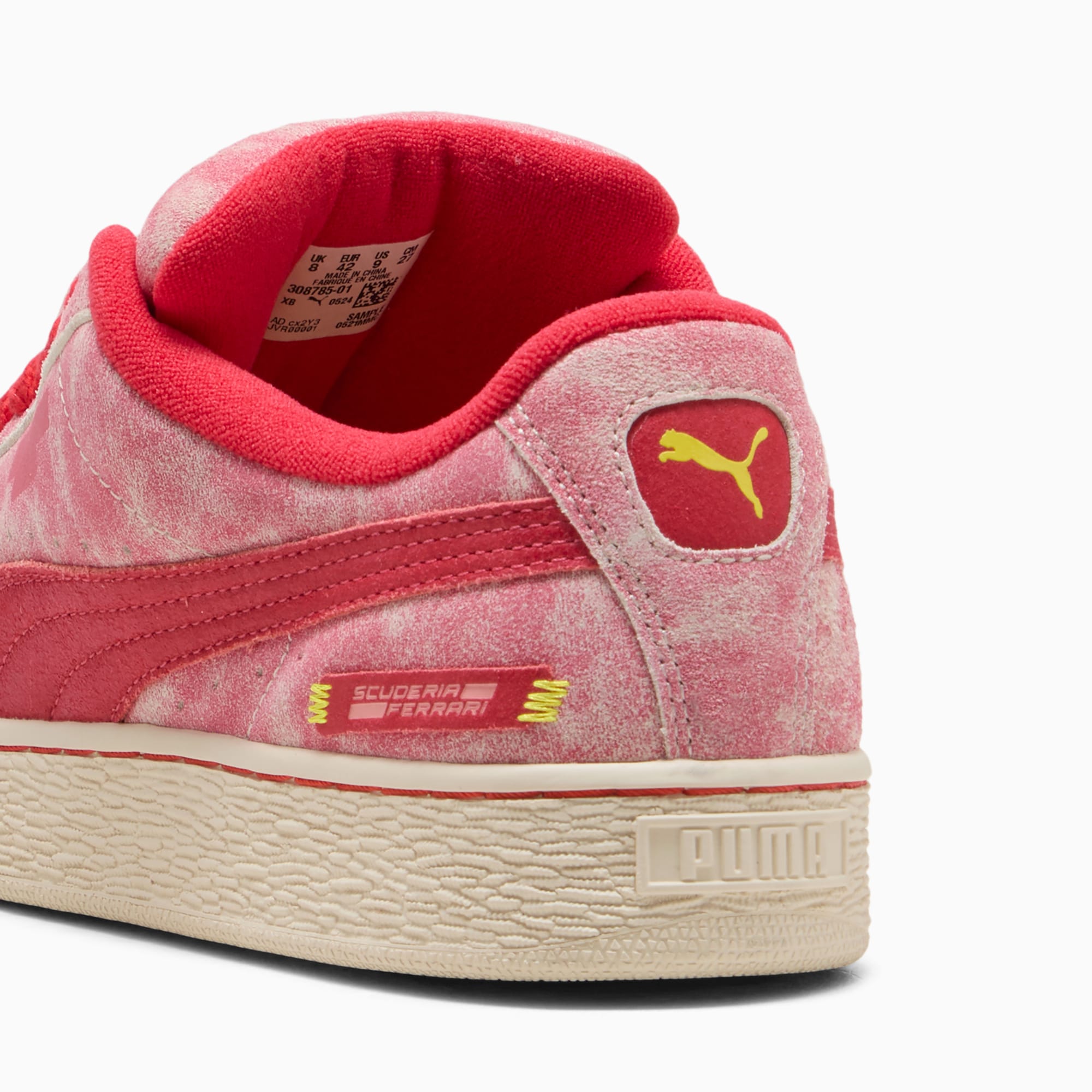 This larger-than-life remix of the iconic Suede Classic has been blazing its own path. The Suede XL draws from pumthta's Y2K-inspired styles while retaining classic Suede DNA. But there's a twist. With its extra padding, extra-large tongue, and extra-thick laces, Suede XL maximizes everything. This rendition is inspired by the desert sun on race day to commemorate Ferrari.- Style: 308785_01