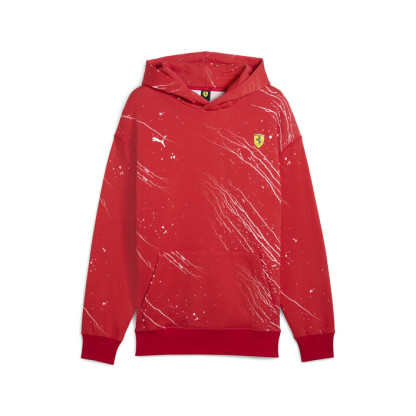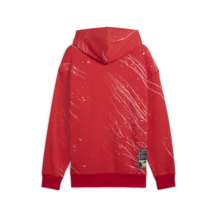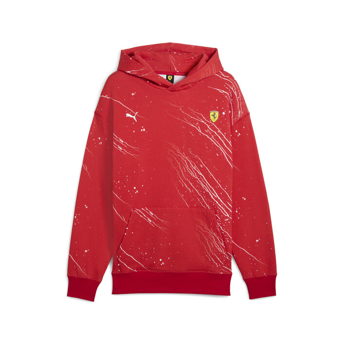 Experience the art of colour with this vibrant hoodie. Featuring a dynamic colour splash print, Scuderia Ferrari and PUMthtA Cat logos, kangaroo pocket, and ribbed cuffs and hem, it's your ticket to high-speed style and unmatched energy.