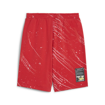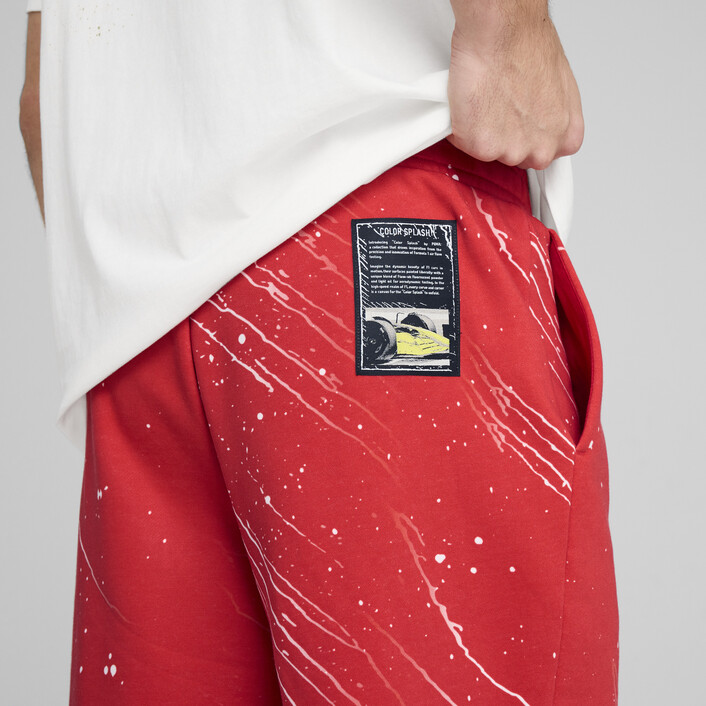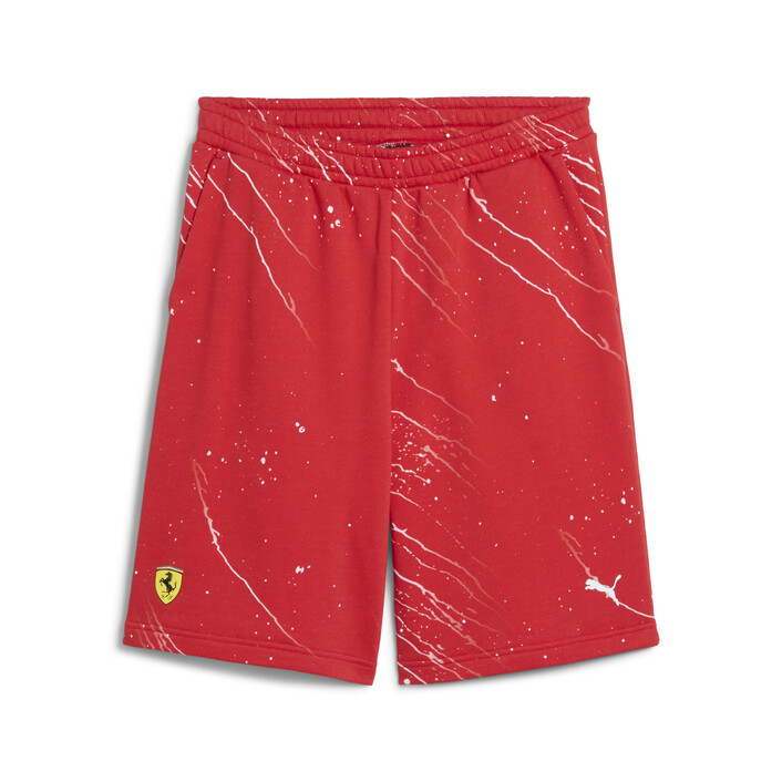 Unleash your inner racer with these dynamic shorts. Featuring a colorsplash allover print, elasticated waistband with drawcord, and Scuderia Ferrari and PUMthtA Cat logos. Regular fit with seam pockets for ultimate convenience. Feel the speed and precision.