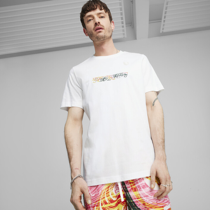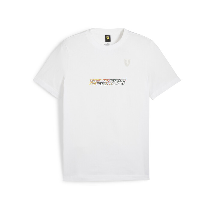 Represent Scuderia Ferrari with this Race Crew tee. The regular-fit men's tee features the Scuderia Ferrari and PUMthtA logos on the front along with a seasonal graphic, track-inspired speed patterns, and plenty of Ferrari style.