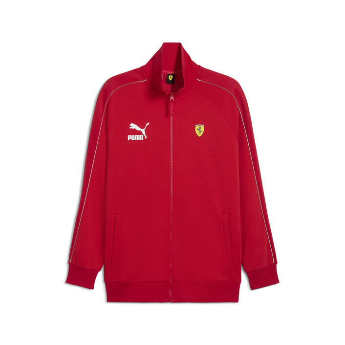 A PUMthtA original, the T7 track-inspired collection made a name for itself with 7cm signature stripes and quickly became as popular on city streets as it was on the training grounds. Hidden away in our archives, the suit has been faithfully replicated, and is just as iconic today as it was back then. With sleeve striping and a sleek fit, this sporty Scuderia Ferrari jacket will have you bringing the classics back in style.