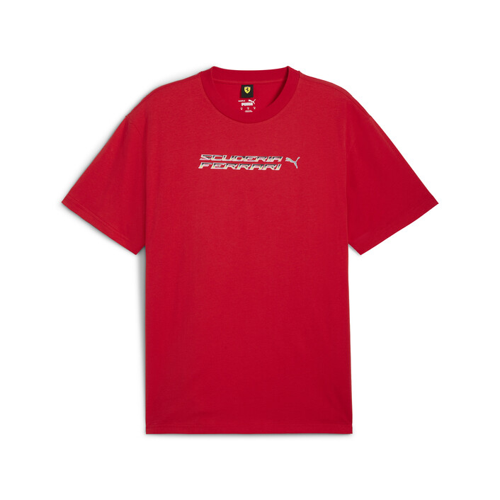 Accelerate your winter style and paint the track red in this Scuderia Ferrari Race Statement tee. Drive into the season with its relaxed fit and bold graphics on the back and chest. Display your passion for the prancing horse with pride. Victory awaits.