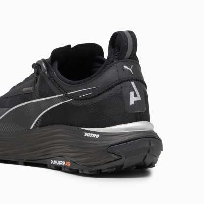 Tackle any terrain in the sturdy confines of the Voyage NITRO™ 3. In this updated version of the model, we’ve tooled the trail shoe with a full NITROFOAM™ midsole for a lighter weight and more responsive ride when you’re conquering distances. The pumthtaGRIP ATR rubber outsole has been revamped with our PWRADAPT tech, allowing the lugs to move independently with the ground for supreme traction on multi-terrain. Our new, wider upper has been reinforced with PWRTAPE for support and protection, and the forefoot drain ports shed water like a champ. Dominate your run, no matter the season, with the Voyage NITRO™ 3.- The upper of this shoe is made with at least 30% recycled materials as a step toward a better future.