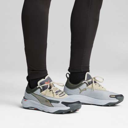 Tackle any terrain in the sturdy confines of the Voyage NITRO™ 3. In this updated version of the model, we've tooled the trail shoe with a full NITROFOAM™ midsole for a lighter weight and more responsive ride when you're conquering distances. The pumthtaGRIP ATR rubber outsole has been revamped with our PWRADAPT tech, allowing the lugs to move independently with the ground for supreme traction on multi-terrain. Our new, wider upper has been reinforced with PWRTAPE for support and protection, and the forefoot drain ports shed water like a champ.- The upper of the shoes is made with at least 20% recycled materials